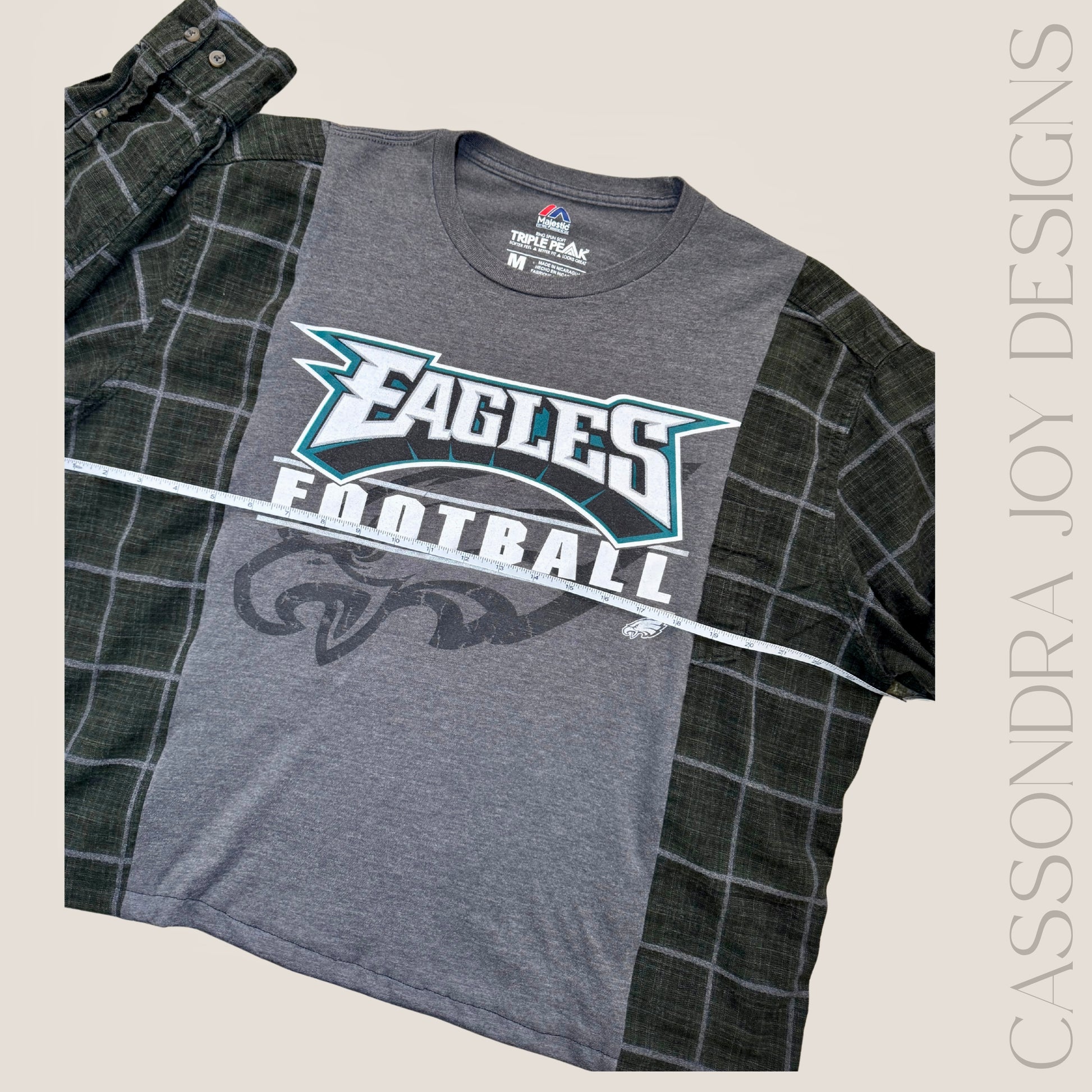 This item is a handcrafted upcycled garment created from legally purchased materials. Cassondra Joy Designs is not affiliated with or endorsed by any sports team or brands for the making of this rework.
